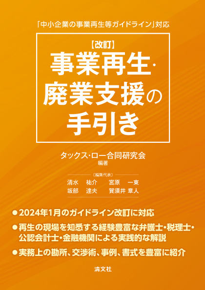 中小企業の事業再生・廃業支援の実務上の勘所、交渉術、事例、書式を収録するとともに、明確な指針となる様々な手法を法律面・税務面・金融面など、複眼的な角度から解説しています。