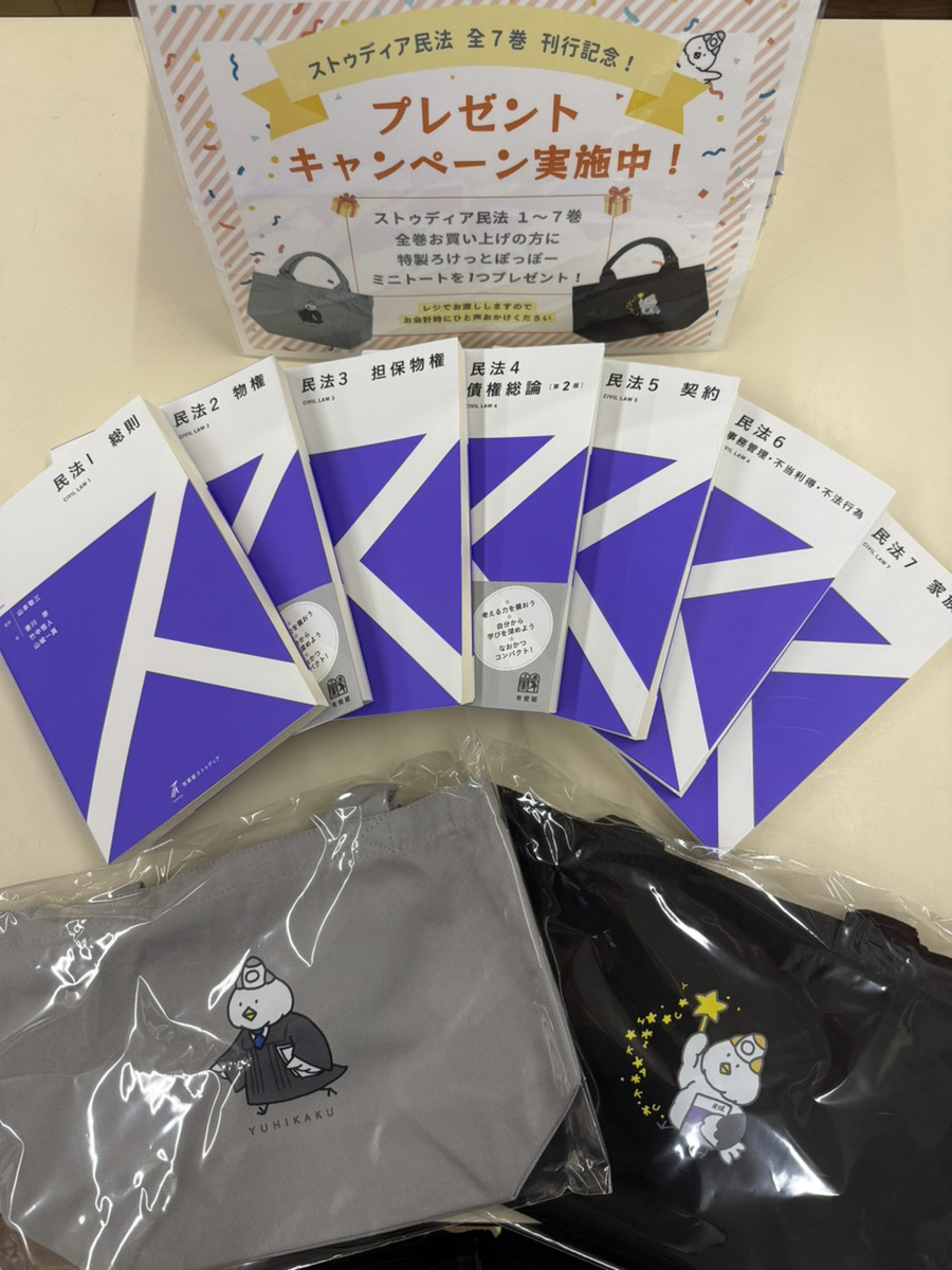 「有斐閣ストゥディア 民法」全7巻の刊行を記念して、セット購入の方にろけっとぽっぽーのミニトート(ブラック)をプレゼントいたします!