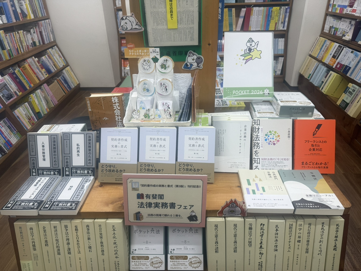 「契約書作成の実務と書式 第3版」の発行を記念いたしまして「有斐閣 法律実務書フェア」を2階店舗にて開催しております。